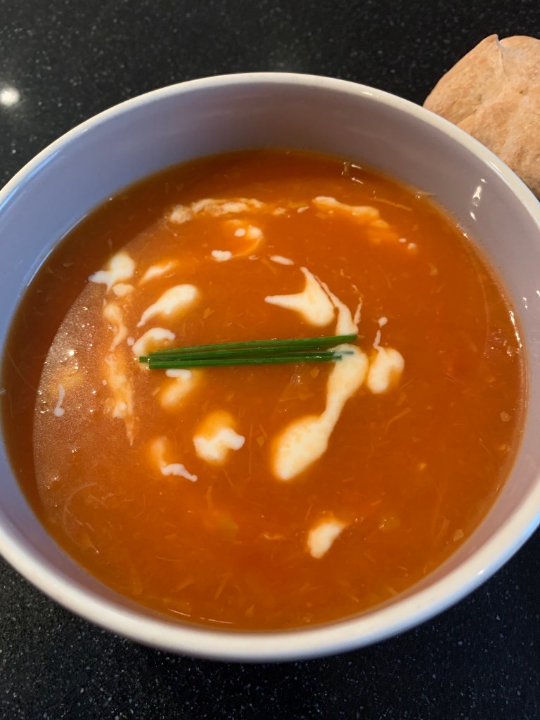 Wat is er heerlijker dan een warme kom tomatensoep, zeker nu het kouder wordt. Als deze tomaten-groentesoep op tafel kwam bij mijn grootmoeder wist ze dat dit de favoriete soep van me was. Ze maakte dan ook steeds een extra portie klaar, zodat ik wat mee naar huis kon nemen. In de zomer maanden bereidde ze deze soep met verse tomaten uit haar serre . Nu het bijna winter is, heb ik de soep gemaakt met tomaten blokjes uit blik, maar ze is en blijft lekker.