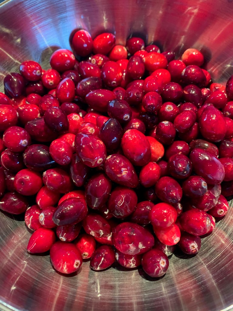 - Spoel de verse veenbessen heel goed onder stromend water en verwijder de minder mooie exemplaren en eventuele steeltjes.