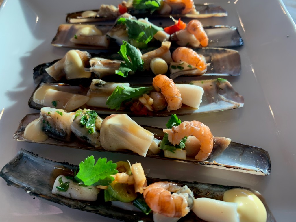 Scheermessen (Ensis officiële naam), één van onze Noordzee schelpdieren. De langwerpige schelpen lenen zich uitstekend om dit hapje met een oosterse marinade te presenteren.