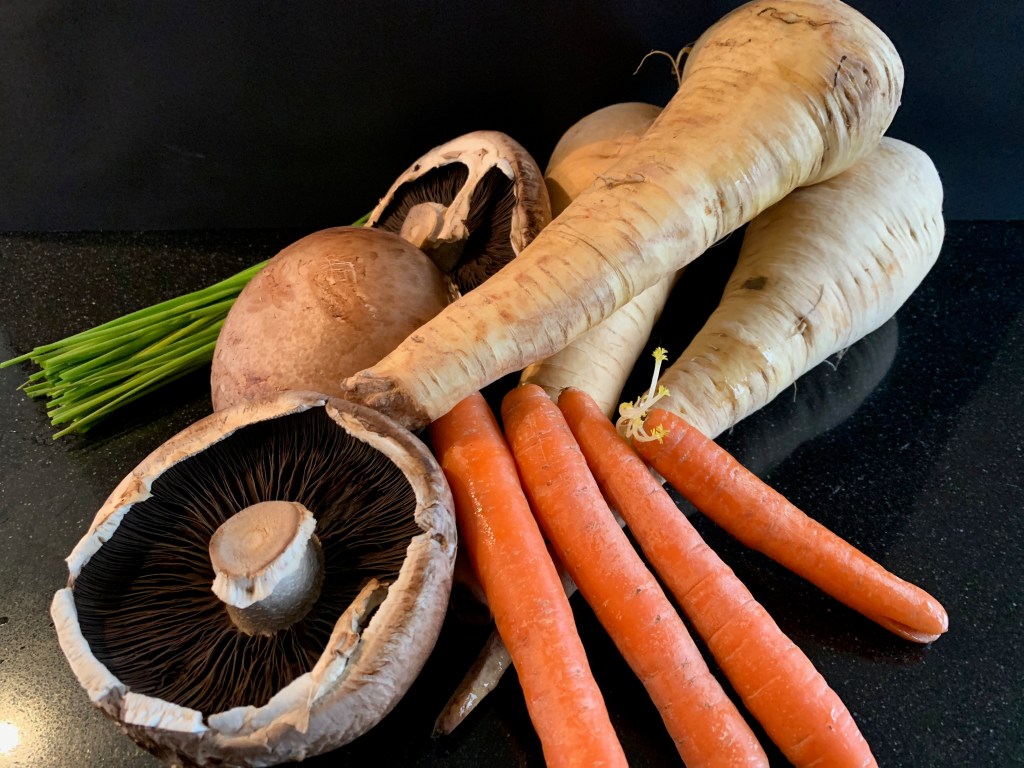 - Pastinaken : Schil de pastinaken, snij in blokjes en breng aan de kook met soja room en groentebouillon.