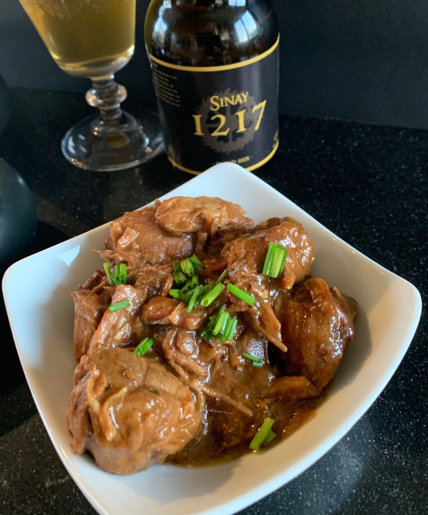 Een heerlijk geurende stoverij met zelf gemaakte frietjes, en home made mayonaise. Vlaamser kan het niet. Deze Vlaamse klassieker kennen we allemaal. Vandaag heb ik voor het eerst de stoverij klaar gemaakt met het feestbier uit Sinaai , Sinay 1217. Dit blonde bier gebrouwen ter gelegenheid van het feestjaar 800 jaar Sinaai, is ondertussen een gekend biertje in het Waasland en daar buiten. Normaal maak ik stoofvlees klaar met donker bier zoals trappist. Maar met dit blonde bier ga ik het nog bereiden in de toekomst. Een aanrader om met te koken en om van te genieten.