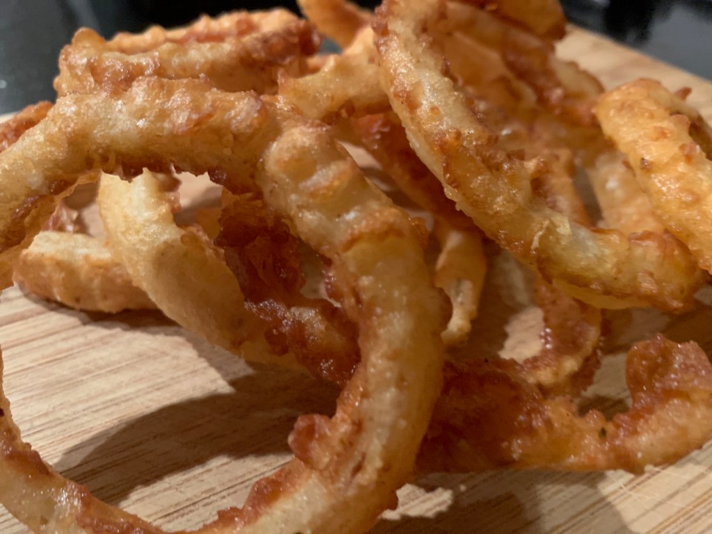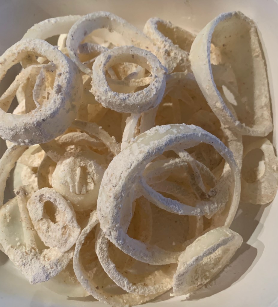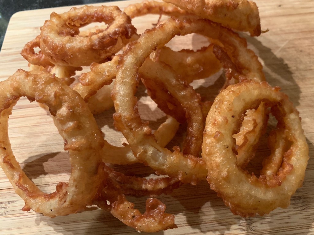 Deze lekkernij is bij ons niet zo gekend in de keuken maar wie ooit al eens naar het Verenigd Koninkrijk of Amerika geweest is, heeft waarschijnlijk kennis gemaakt met de fameuze onions-rings. Deze worden als ‘side-dish’ geserveerd in vele pubs en restaurants. Zelf heb ik deze heerlijke uien- ringen voor de eerste maal gegeten in een Engelse pub. Terug thuis heb ik opgezocht hoe je die het best zelf kan klaar maken en dit bleek helemaal niet moeilijk te zijn. Er zijn verscheidene recepten te vinden op het internet om deze lekkernij te bereiden. Zo heb ik verschillende receptjes tot één recept gecombineerd en vind ik het resultaat best lekker. Leuk voor op de hapjes tafel of zoals in Engeland als bijgerecht bij chips and Fish of steak.