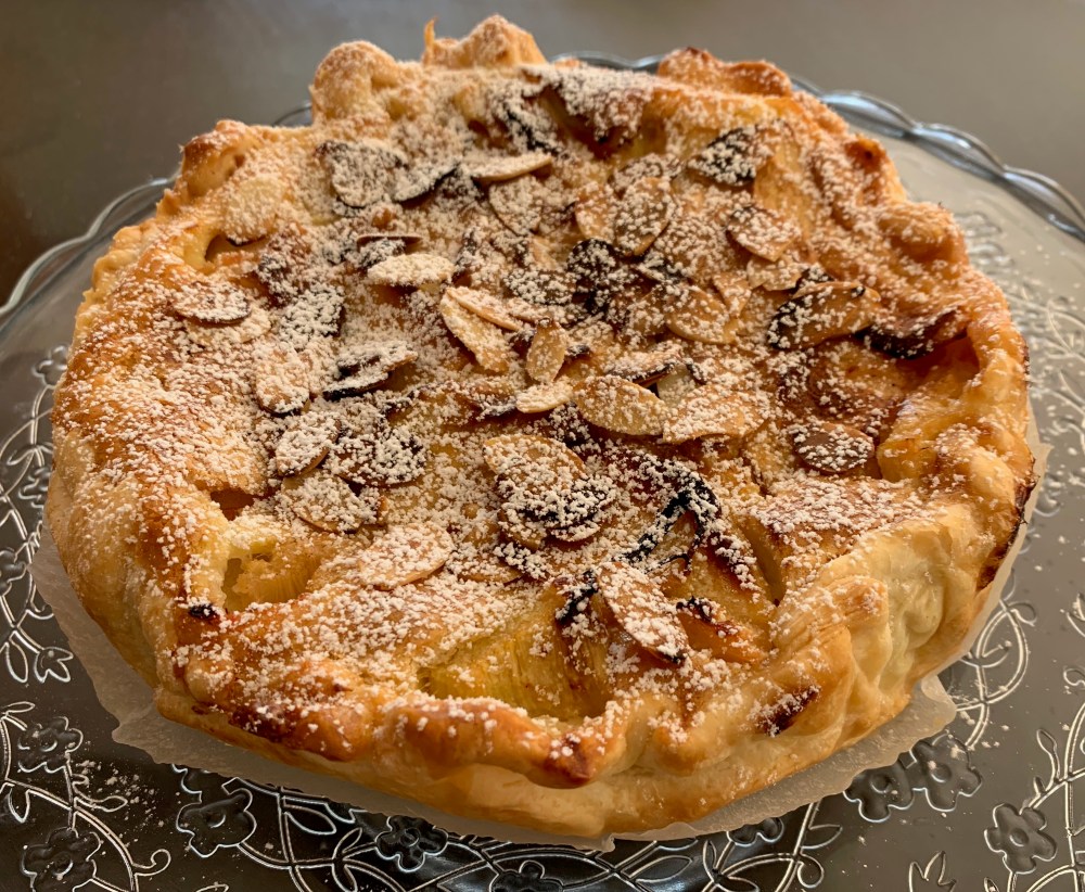 - Garneer met de geroosterde amandelschilfers en bloemsuiker.