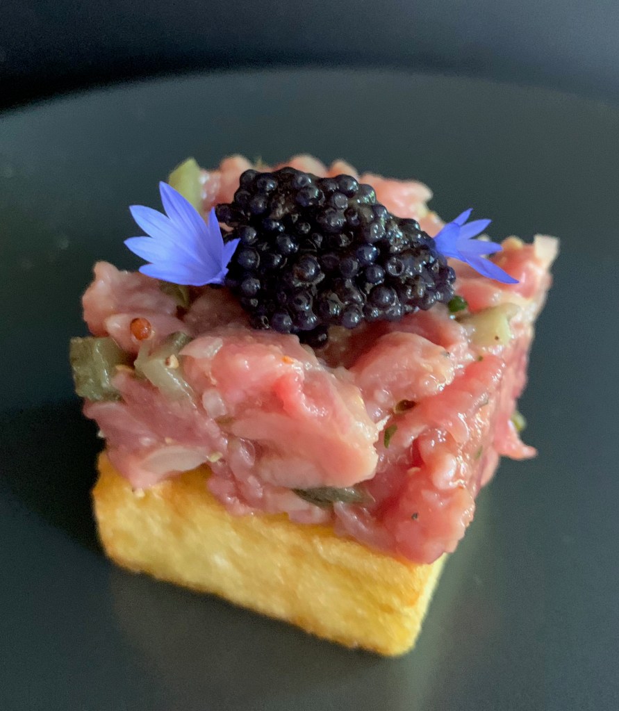Nu had ik onlangs zin in steak tartaar, maar wou het serveren als hapje vooraf. Om het gerecht wat feestelijker en meer in het oog te laten springen, heb ik het afgewerkt met een toefje viseitjes. Je kan hiervoor natuurlijk ook de echte kaviaar voor gebruiken.