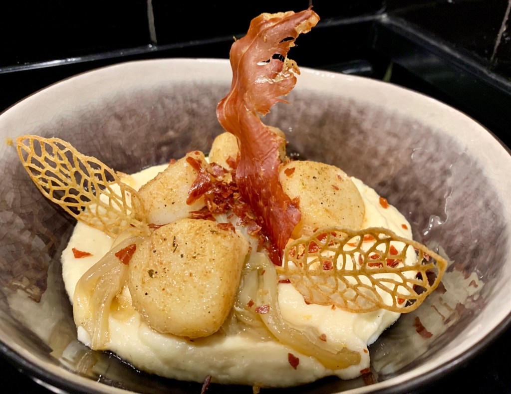 De feestdagen naderen en misschien ben jij ook al op zoek naar lekkere gerechtjes om te serveren tijdens deze dagen. Dit gerecht is een feestelijk voorgerecht met kort gebakken St Jakobsvruchten, een crème van peterseliewortel en gestoofd witloof. Je kan al heel veel op voorhand bereiden, zodat het op de dag zelf geen hectische toestanden in de keuken worden, maar dat je samen met de gasten ontspannen kan genieten. Om het geheel af te werken koos ik voor Ganda ham chips, die ik verkruimelden en een krokantje met chili.