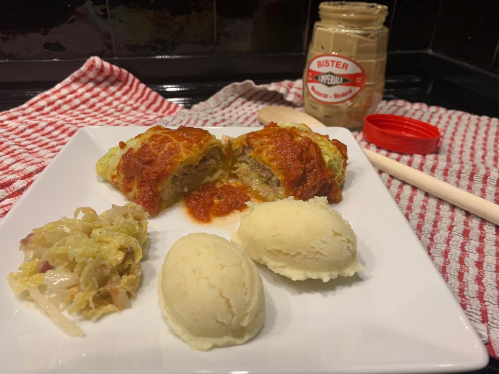 Een winters gerecht kun je deze gevulde savooi kool bladeren wel noemen. Met een fijne tomatensaus is dit een stevige maar heerlijke maaltijd. Lekker met mosterd aardappel puree en gestoofde savooi met geen spekjes maar fijne Coppa.