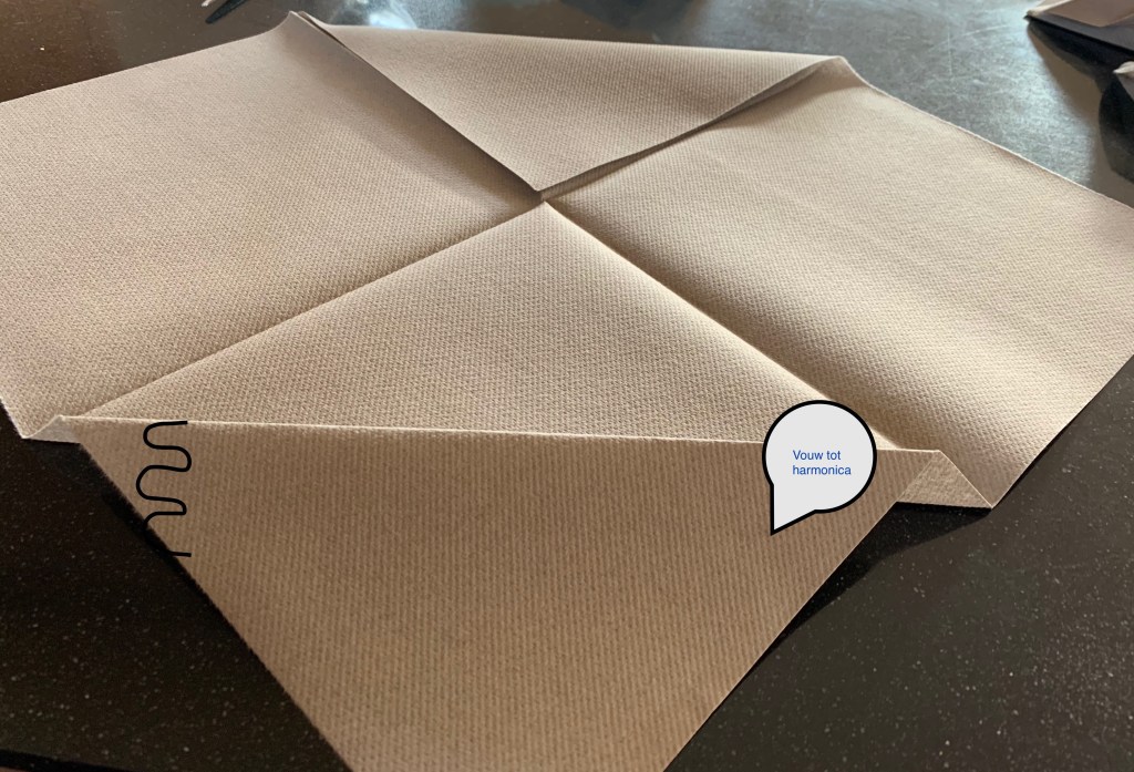 8. Plooi ook de linkerhoek van de harmonica naar het midden