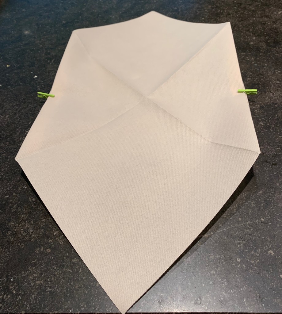 - Leg de volledig opengevouwen servet in ruitvorm voor je op tafel