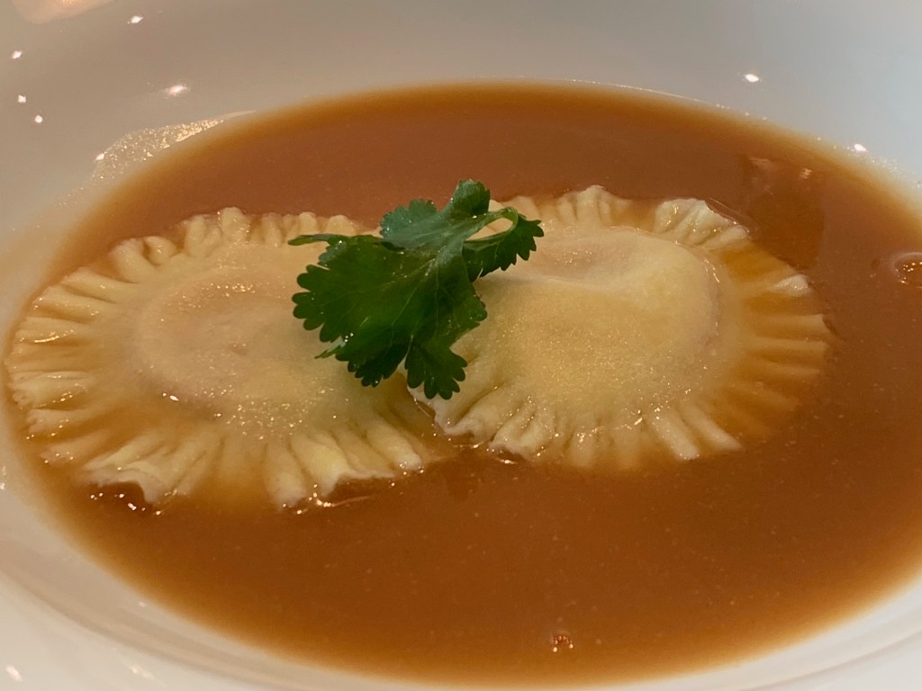 Deze smaakcombinatie is verrukkelijk en moet je beslist eens proeven. Het verse pasta deeg vraagt een beetje werk, maar is echt de moeite waard. Het Oosterse sausje op basis van gevogelte fond en soja lepel je mee uit zoals een soepje. Voor de vulling kan je kiezen naar keuze. Wie liever geen foie gras eet, kan natuurlijk ook een vegetarisch alternatief gebruiken zoals bv Faux gras (even lekker).