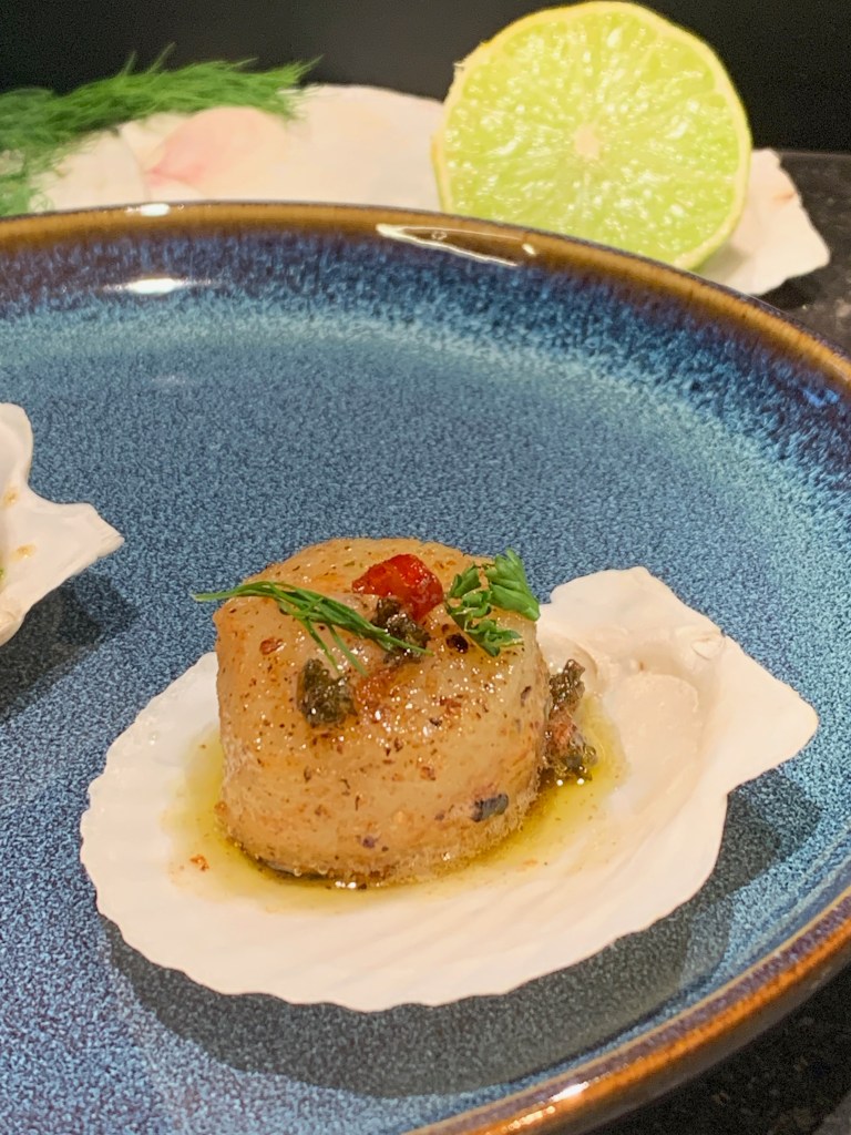 Dit gerechtje kan je serveren als hapje in mini -schelpjes bij het aperitief. Het is lekker fris door de limoenboter en fijne kruiden. Maar je kan het ook perfect als voorgerechtje presenteren in een kommetje, bv drie stuks per persoon met een sneetje brood. Niet moeilijk, weinig werk en super lekker…