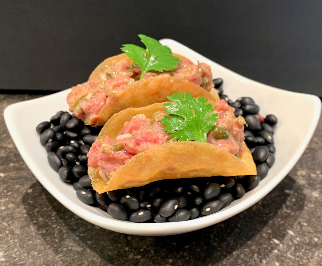 Knapperig brickdeeg met heerlijke verse tartaar van Belgisch Blauw Wit rundsfilet. Het magere vlees van dit Belgisch rund is perfect voor een lekkere tartaar.