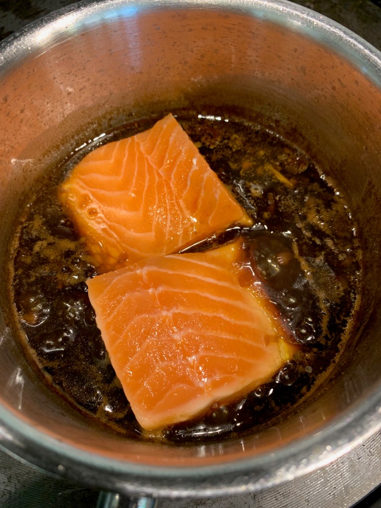 Doordat de zalm gaart in het sausje, neemt hij alle smaken op en is super zacht. (deze manier van bereiden heb ik onlangs ontdekt).
