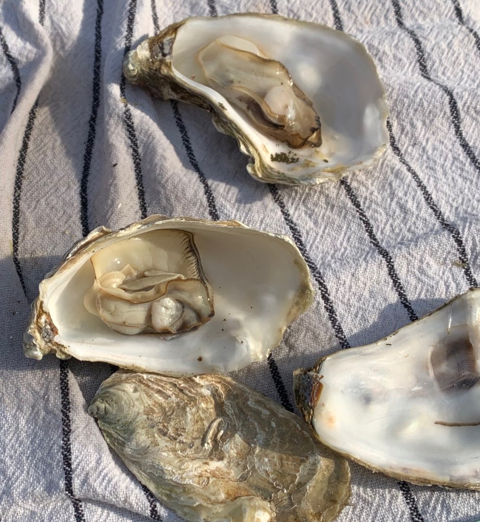 - Haal de oesters uit de BGE, steek ze verder open en laat het vocht eruit lopen. Let op is heet!