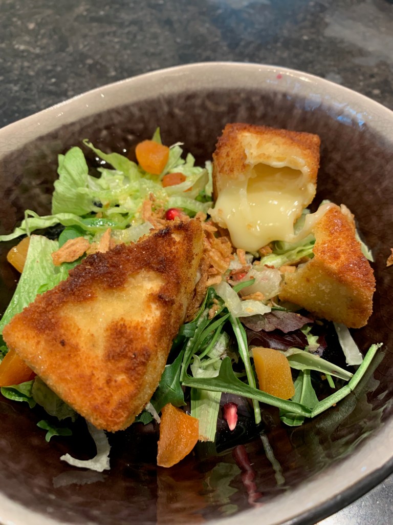 Deze gebakken brie punten zijn heerlijk zowel als lunch of als voorgerecht. Samen met een lekkere salade en mosterd dressing serveer je een mooi gerecht op tafel.
