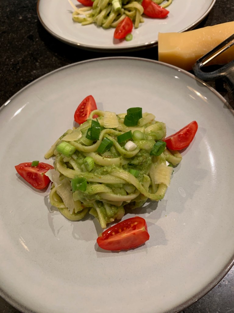 Wat een mooie kleur heeft deze groene groenten pasta schotel. Boordevol lekkere groene groenten en super gezond.