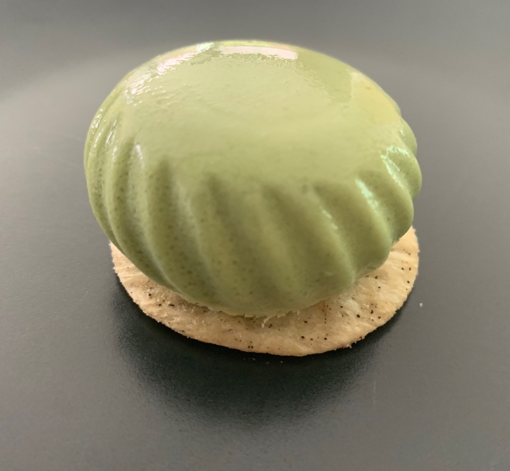 - Haal de reeds bevroren groene curry panna cotta’s tijdig uit hun vorm en laat ontdooien.