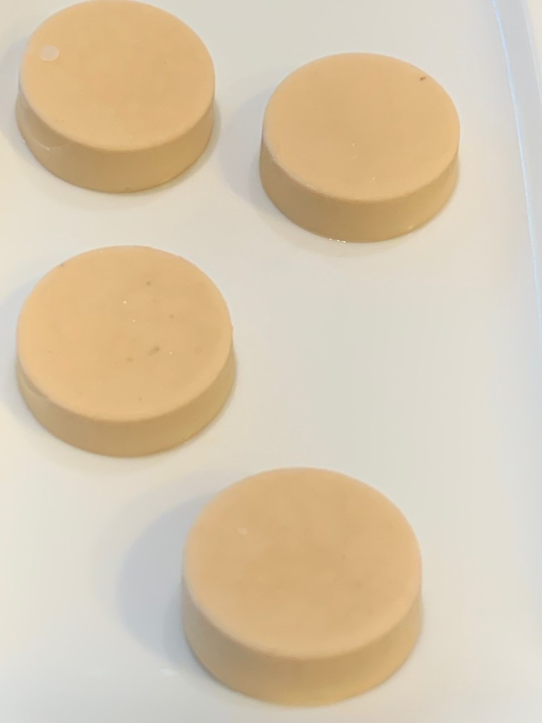 - Vul kleine siliconen vormpjes op met het mengsel en laat invriezen. Reken op zo’n vier uur minstens. Kan daags voordien of langer.