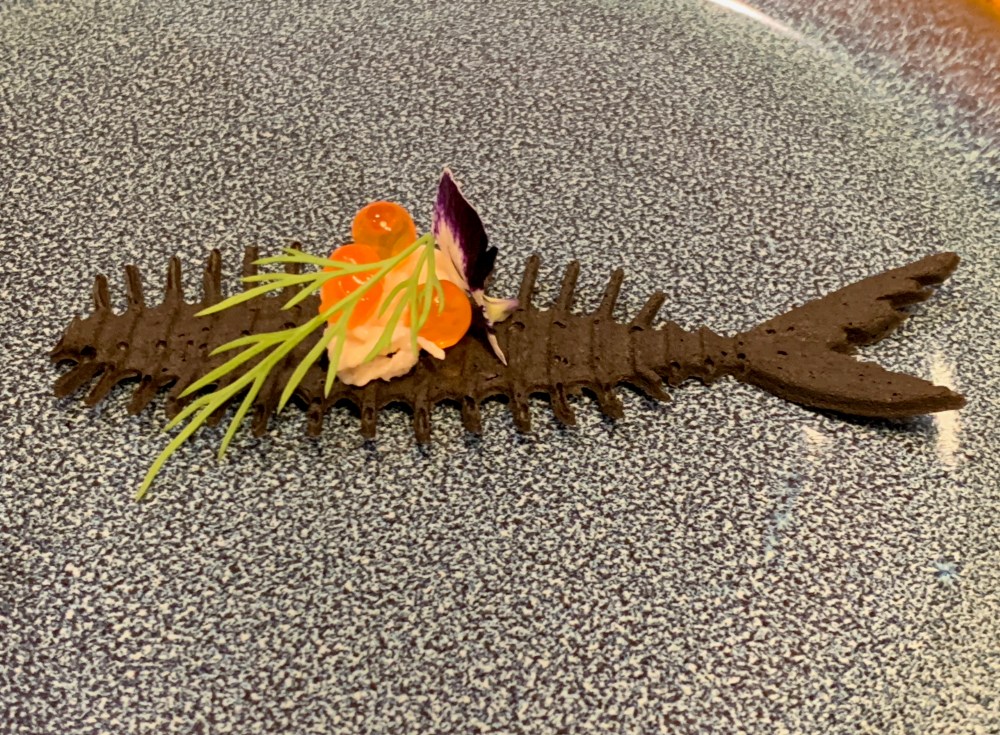 Wat een mooie vorm is deze visgraat Lisca van Silikomart. Het oogt mooi als hapje of gebruik het om je bord mee af te werken. Het krokantje van inktivs inkt past heerlijk bij de smaak van de gerookte forel. De vis krokantjes kan je perfect daags tevoren bakken en bewaren in een afgesloten doos. Met de hoeveelheden in dit recept voor de gerookte forel mousse heb je over. Maar deze mousse is ook heerlijk bij een boterhammetje. Samen met hele dunne schijfjes granny smith appel of een tartaar van rode biet.