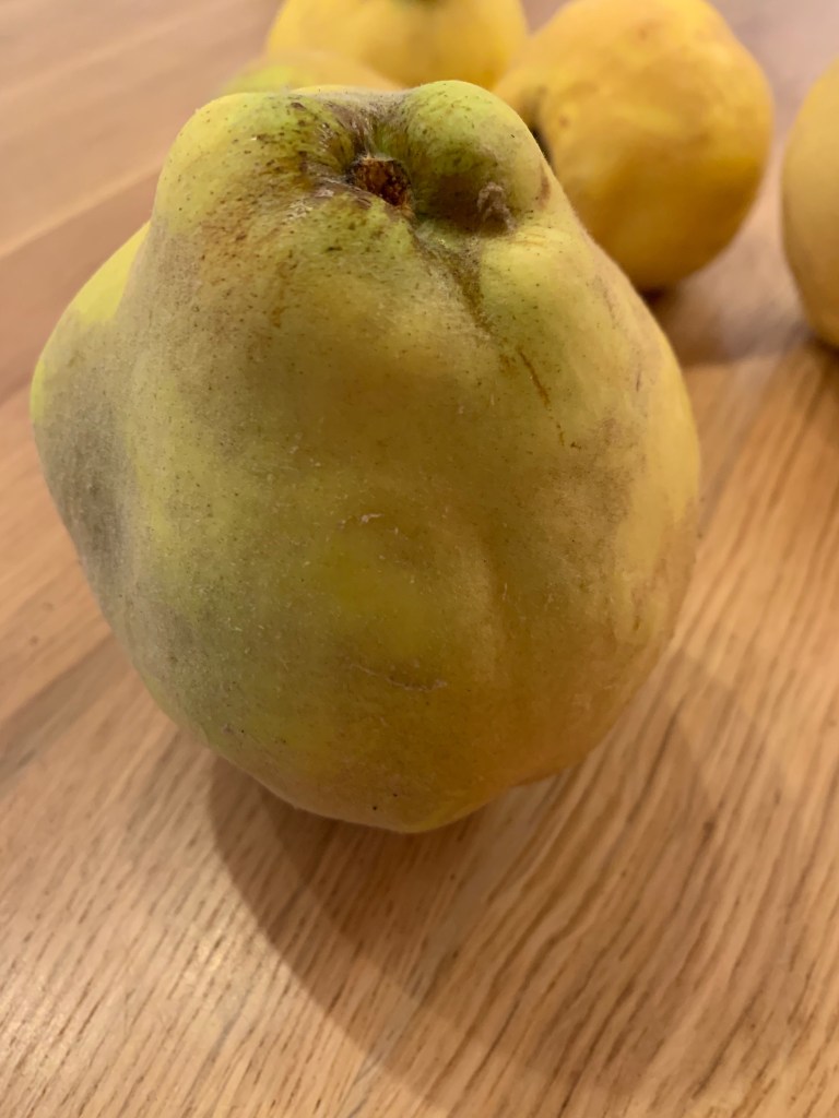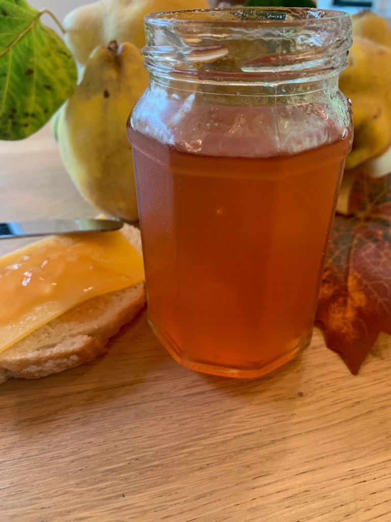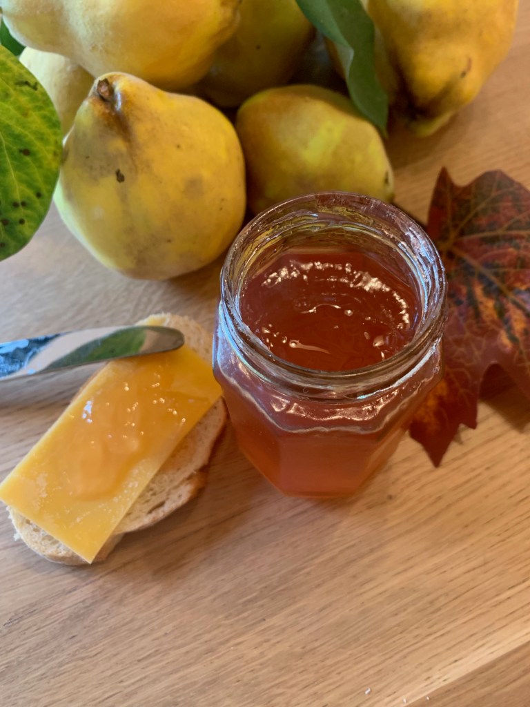Kweeperen, een harige- donzige vrucht met speciale vorm en gele kleur. Zodra de kweeperen rijp zijn haal ik ze met plezier binnen in de herfst. De subtiele geur van kweepeer doet me aan knusse herfstdagen denken. Kweeperen zijn behoorlijk weerbarstig met hun harde vruchtvlees, en niet rauw eetbaar. Maar na wat tijd, liefde en geduld veranderen ze echter in een potje lekkere glanzende kweeperen gelei. Heerlijk bij een stukje brood met kaas of bij hartige gerechten. Maak zelf deze heerlijke kweeperengelei met dit eenvoudig recept.
