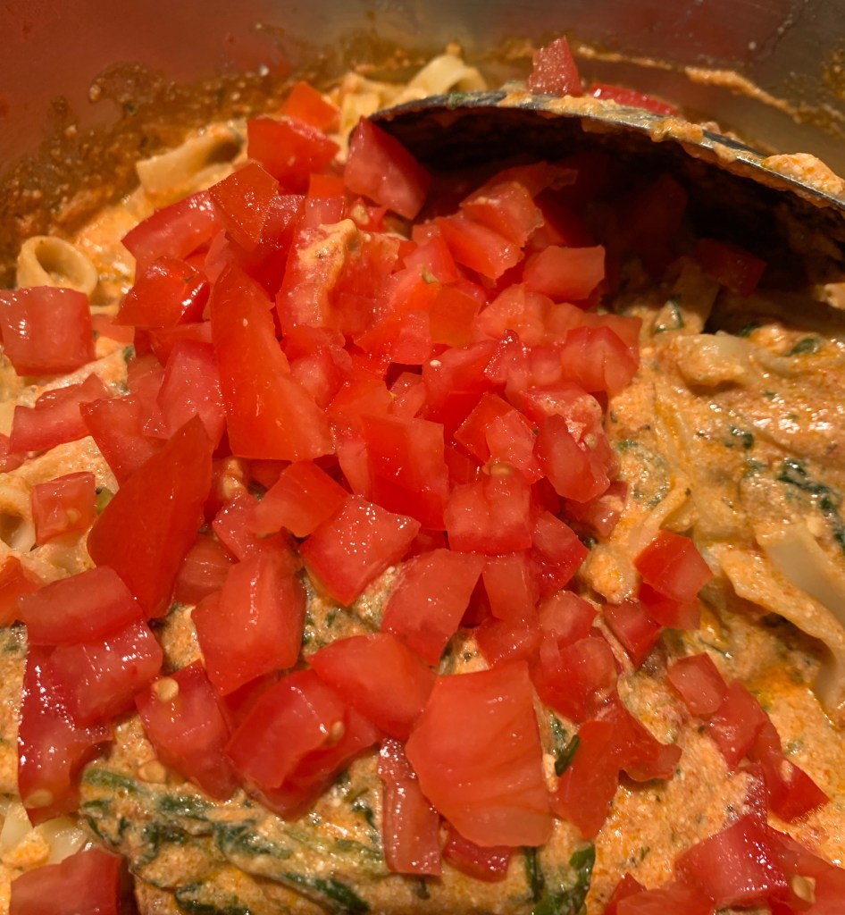 - Voeg ondertussen de arrabbiatasaus bij de ricotta en spinazie.