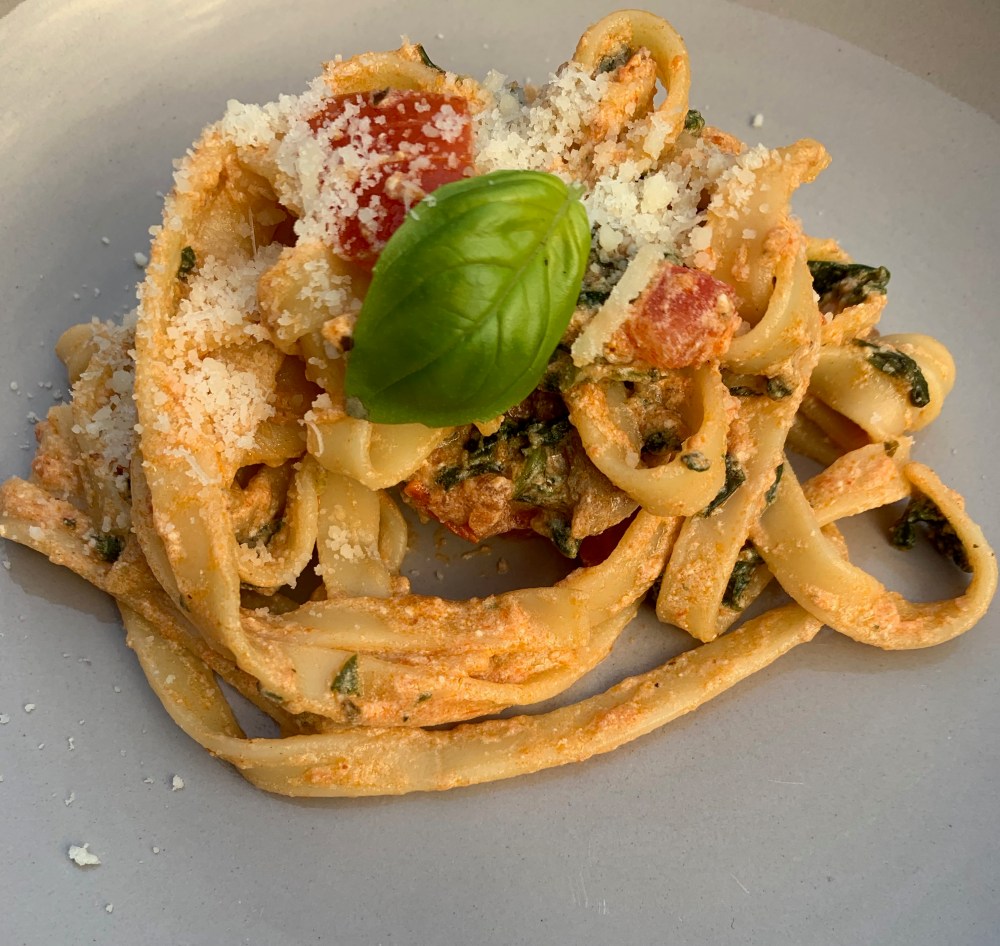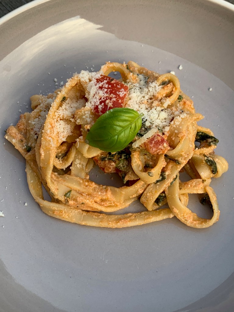Wanneer een doordeweekse pasta plots een restaurant waardig gerecht wordt. Wat hou ik van deze gerechten die met weinig moeite op tafel staan en ietsje meer uitstralen. Dit romig pasta gerecht is er één van. Eenvoudig in bereiding en zeer smaakvol. Een gerecht dat bewijst dat verfijning niet ingewikkeld hoeft te zijn. En wie lust er geen heerlijk bord pasta? Vandaar dat ik dit lekker gerechtje met jullie deel. Dit comfort-food gerecht staat snel op tafel en is super heerlijk. Lekker smeuïg door de ricotta en pittig door de kruidige tomatensaus. Zalig …