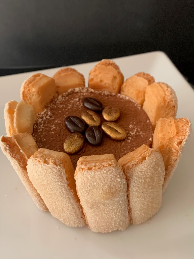 Hieronder zelfde smaakbom, andere look…Voor de versie met de boudoir koekjes eromheen. Heb ik hetzelfde recept gebruikt. Maar heb ik de tiramissu in muffinvorm gegoten.