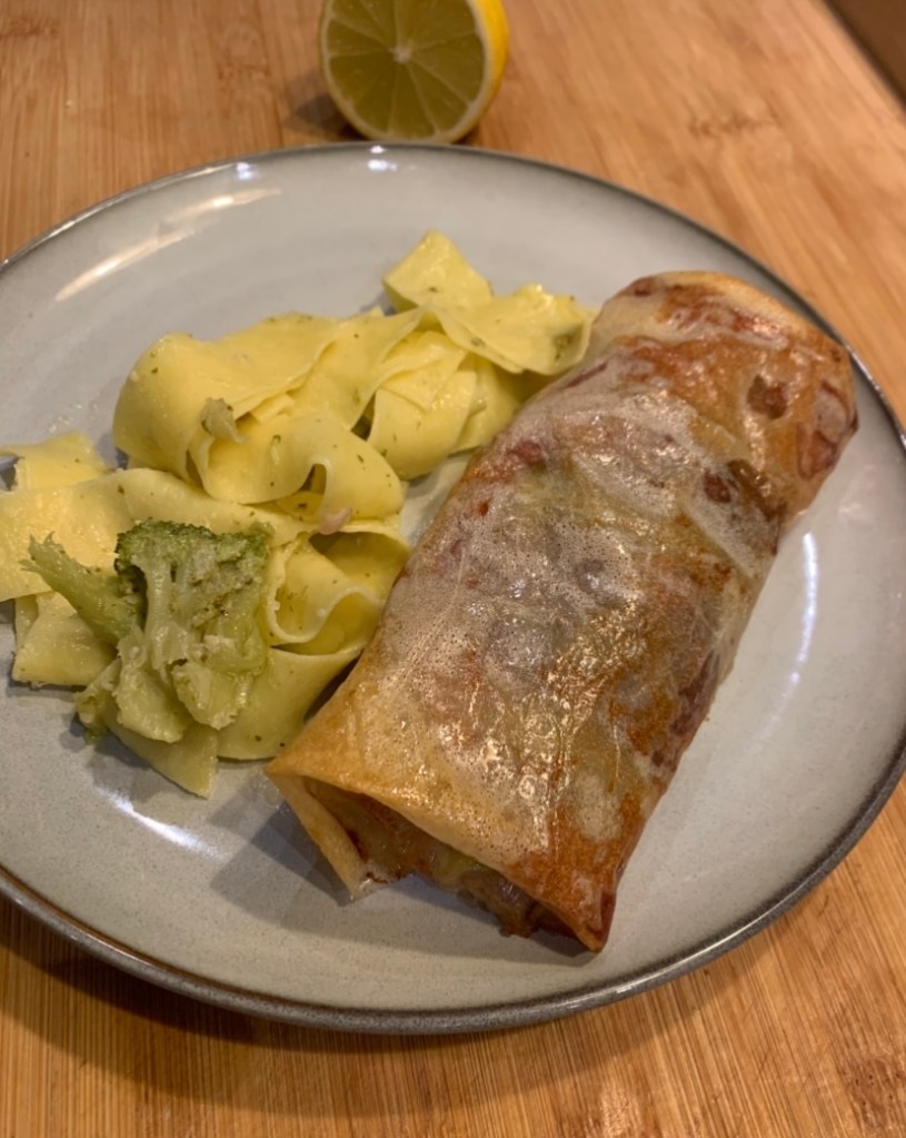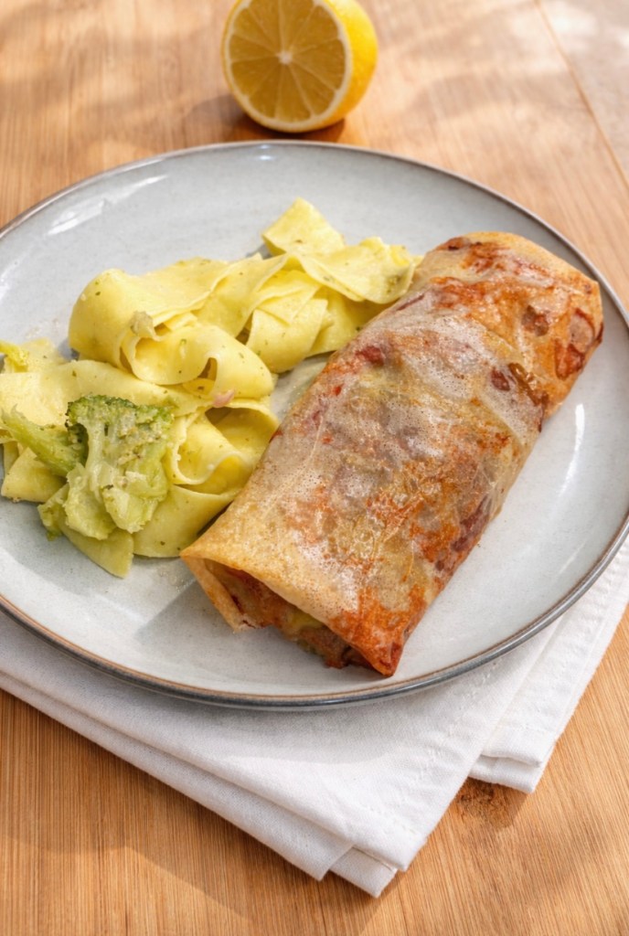 Dien meteen op met bv pappardelle en broccoli roosjes.